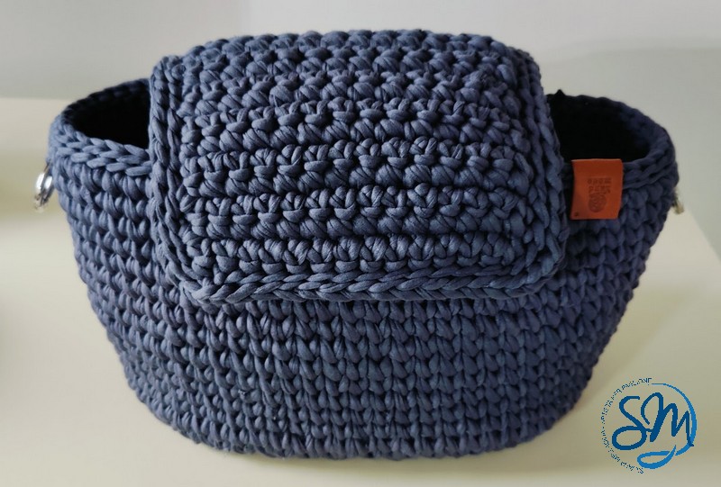 Creato all’uncinetto con filo di cotone grosso, di colore grigio.